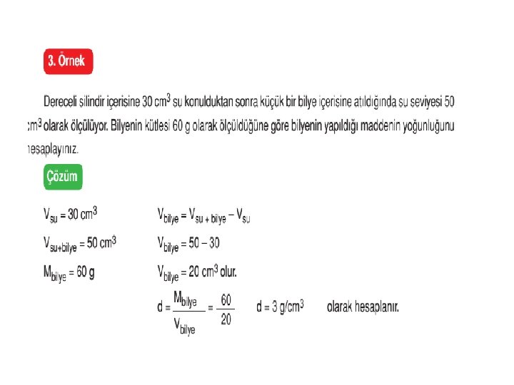 Aşağıdaki maddelerin yoğunluklarını hesaplayın.