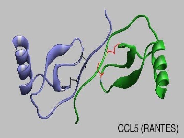 Chemokiny àTvoří rodinu cytokinů, indukovatelných prozánětlivou aktivací. 8 -10 k. Da, 20 -50% sekvenční homologie, podobná genetická a terciární struktura. Všechny tyto proteiny poskytují množství konzervovaných cysteinových zbytků, které se účastní v tvorbě intramolekulárních disulfidových vazeb.