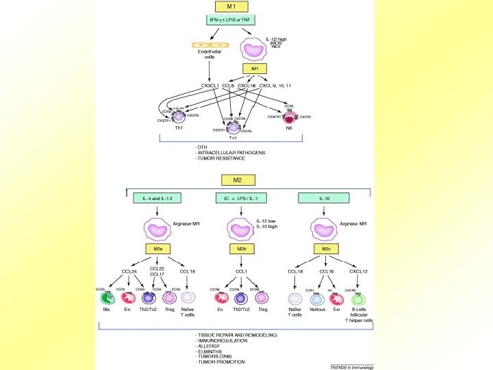Funkce chemokinů è 1. esenciální mediátory normálního pohybu leukocytů è 2. podpora zánětu è 3. indukce chemotaxe è 4. aktivace zánětlivých buněk ð a/ aktivace granulocytů a makrofágů s následným oxidativním vzplanutím, degranulací a releasem lysosomálních enzymů ð b/ovlivnění imunitních buněk k odpovědi na suboptimální množství zánětlivých mediátorů ð c/ mocné uvolňovací faktory pro histamin z bazofilů