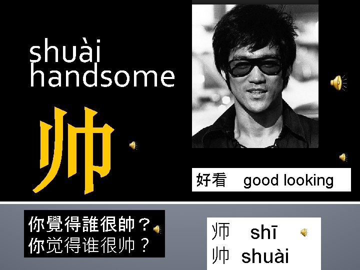 kù cool 酷 This word came from English word “cool”. 你覺得誰很酷? 你觉得谁很酷?