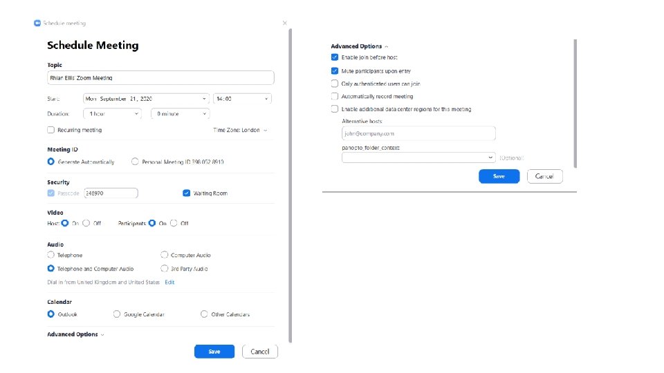 Via Outlook/Email/Meeting Requests: - Ways to share the joining info 1. With Outlook integration, a meeting request will automatically generate allowing you to add participants individually or with a mailing list 2. Or ‘Copy the invitation’/manually extract the invitation text & copy it into an email message or meeting request, with mailing lists or smaller numbers of participants