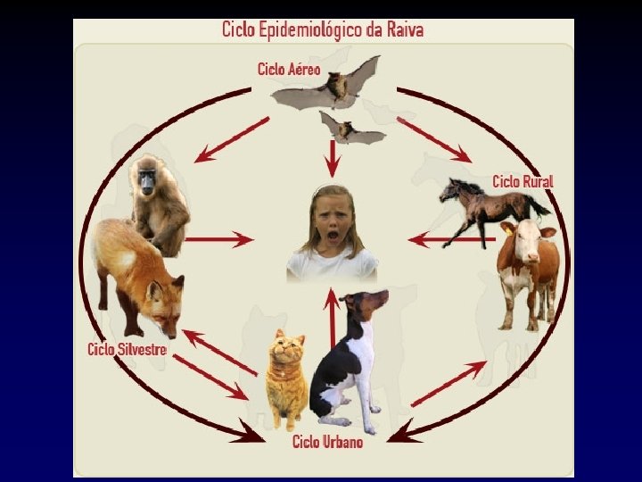 EPIDEMIOLOGIA n Ciclo urbano; MORCEGOS NÃO HEMATÓFAGOS Diversas espécies Humanos