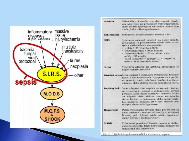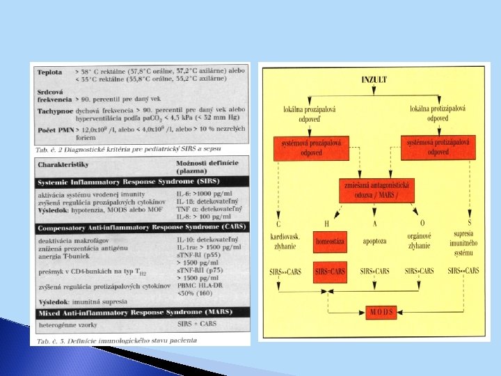 Komplikácie zápalu-SIRS � � � SIRS -syndróm systémovej zápalovej odpovede (1992) -systémová odpoveď na infekčné a neinfekčné noxy, ktorá sa prejaví prítomnosťou minimálne 2 zo 4 príznakov � Zvýšenie telesnej teploty nad 38 alebo pod 36 C � Zvýšenie frekvencie srdca na viac ako 90/min � Zvýšenie frekvencie dýchania nad 20/min alebo pokles Pa. CO 2 na menej ako 32 mm. Hg (4, 25 k. Pa) Abnormálny počet leukocytov (viac ako 12 000/mikro. L alebo ich zníženie pod 4 000/mikro. L, viac ako 10% mladých vývojových foriem, prípadne prítomnosť tyčiek �