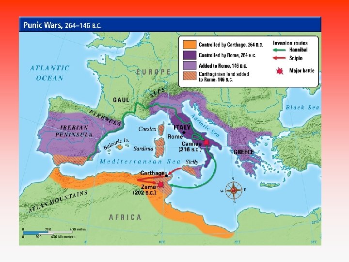 Punské války • Punské války byly tři. • Řím x Kartágo • Kartágo: původně fénická kolonie ovládalo severoafrické pobřeží (dnes Tunis) a část Španělska. Kartagince nazývali Římané Puny.