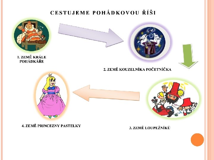CESTUJEME POHÁDKOVOU ŘÍŠI Letos jsme zápis pro první třídu provedli pohádkově. Nazvali jsme jej CESTUJEME POHÁDKOVOU ŘÍŠI a prošli jsme čtyři země. V zemi krále Pohádkáře budoucí žáčci prokázali, jak znají pohádky. Potom je vítal kouzelník Početníček, který se jich vyptával na barvy, geometrické tvary a počítání. V zemi loupežníků navštívili les a v něm plno zvířátek. Nakonec došli do země princezny Pastelky.