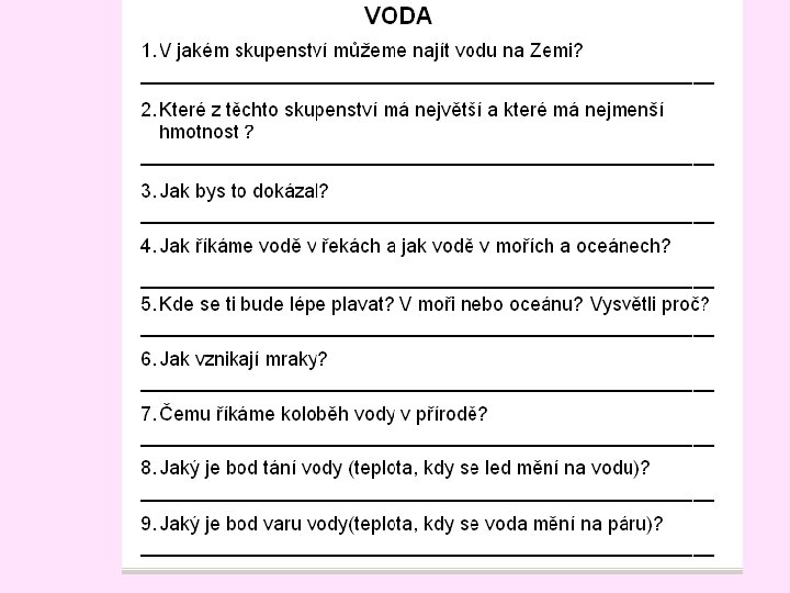 Žákovo pojetí učiva - prekoncepty q Jaká je představa žáka o určitém ději, jevu a podobně. PREKONCEPTY jsou založeny na předchozích zkušenostech žáků – ze školy, televize, internetu, sociokultúrním prostředí v rodině, zájmových aktivitách žáků a dalších – tedy různí žáci mohou mít různé prekoncepty. q Jak lze zjišťovat prekoncepty žáků: - Rozhovor se žáky – skupinový nebo individuální - Výtvarný, případně dramatický, projev - Dvouúrovňový didaktický test - Grafické strukturování učiva (pojmová mapa) - Projektivní techniky (nedokončené věty, záměrně neurčitá zadání, …) - Interakční analýza – analýza záznamu hodiny jak učitele, tak žáků q Proč zjišťovat prekoncepty žáků? Vstupní – východisko pro přípravu výuky, motivace pro žáky. Průběžné – kontrola pochopení probíraného učiva žáky, odhalení případných miskoncepcí v průběhu výuky tématu. Výstupní - kontrola pochopení probíraného učiva žáky, odhalení případných miskoncepcí po probrání tématu.