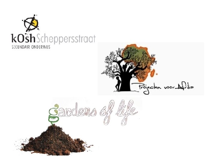 Gardens of Life een tuin gemeenschappelijk (dorp) of individueel (gezin) voorbereiding: grondverbetering (water, vruchtbaarheid, structuur) geschikte (ecologische) producten (eenvoudige) irrigatie zaadballen permacultuur 1 m² tuin, piramidetuin, flessetuin (ecologische) omheining voor buitenhouden vee