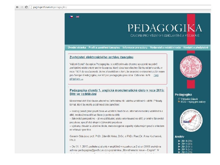 Práce s literaturou (3) Nutnost definovat klíčová slova (a jejich varianty) i v angličtině – užitečná pomůcka - slovníky Vyhledávání V katalogu knihovny Ped. F MU a dalších V českém interentu (seznam, google) V anglických odborných časopisech http: //katedry. ped. muni. cz/knihovna/e-zdroje/databaze EBSCO, SCOPUS ERIC - Educational Resource Information Center JSTOR (…)